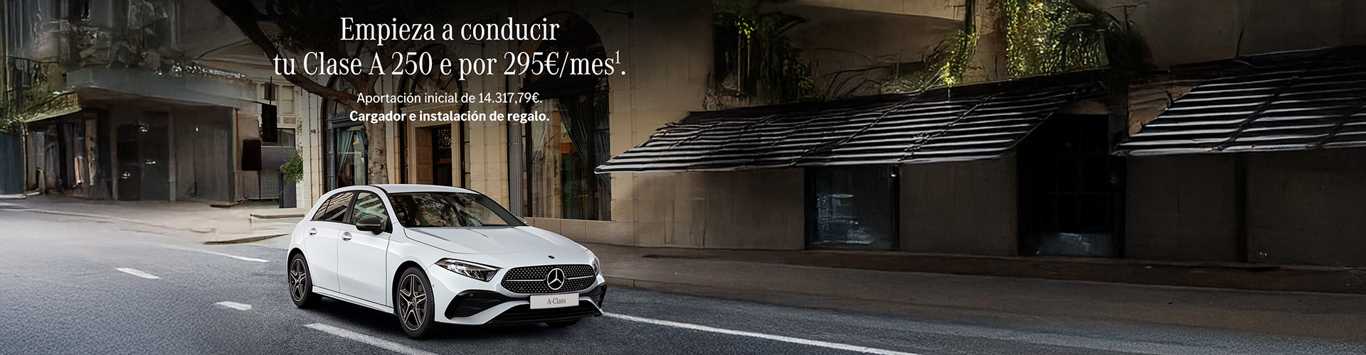 Oferta sujeta a la contratación de Seguro Mercedes-Benz C.S. Ejemplo de Renting particulares con Mercedes-Benz Renting. S.A., para un Clase A 250 e con AMG Line Advance Plus, Paquete Night y cargador e instalación gratuita, por 295€, aportación inicial de 14.317,79€ impuestos incluidos, a 48 cuotas, 20000 kms/año. Oferta sujeta a la contratación del Seguro Mercedes-Benz C.S., no incluido en la cuota, con posibilidad de contratar el mantenimiento y con un año adicional de garantía. Válido para ofertas realizadas hasta el 31/03/2025, solicitudes aprobadas hasta el 15/04/2025 y contratos activados hasta el 31/05/2025.