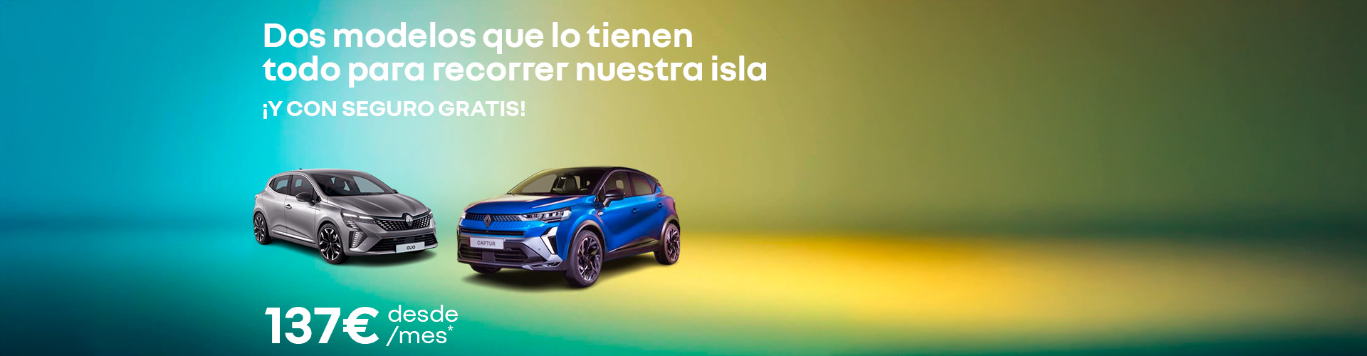 *RENAULT CLIO: Oferta válida en Canarias, para particulares. Financiación a través de Mobilize Financial Services. A través del producto financiero preference. Plazo de financiación: 60 meses. Entrada inicial: 6.000€ . TIN: 9,00% TAE 10.50% Capital inicial financiado: 10.324,44€ Valor Mínimo Garantizado: 7.567,69€. **Sujeto a disponibilidad. Esta oferta está sujeta a disponibilidad, aprobación crediticia y condiciones de la entidad financiera. Oferta valida del 01 al 31 de Mayo de 2025. El modelo visualizado puede no coincidir con el ofertado.