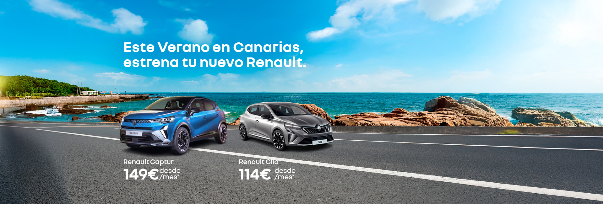 *RENAULT CLIO: Oferta válida en Canarias, para particulares. Financiación a través de Mobilize Financial Services. A través del producto financiero preference. Plazo de financiación: 61 meses. Entrada inicial: 6000€. TIN: 8% TAE 9,06%. Capital inicial financiado: 10720,89€. Valor Mínimo Garantizado: 7631,51€. Kms totales: 50000. Sujeto a disponibilidad, aprobación crediticia y condiciones de la entidad financiera. Oferta válida del 01 al 30 de julio de 2025. El modelo visualizado puede no coincidir con el ofertado.
